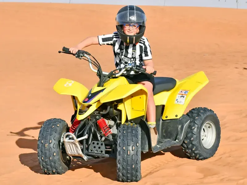 Most quad bikes can only carry one passenger at a time; sharing is hazardous overloaded and should only be undertaken with strict supervision when exploring the desert.