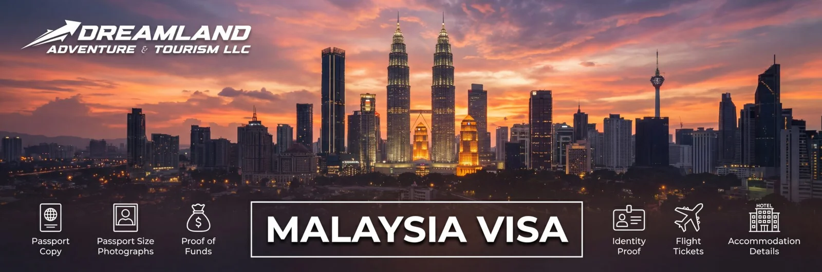 Simply contact Dream Land Adventure Tourism, and we’ll take it from there—handling everything needed to submit and process your Malaysia visa application smoothly. For complete assistance with Malaysia visa pricing and the application process, reach out to us at +971 52 447 2719.